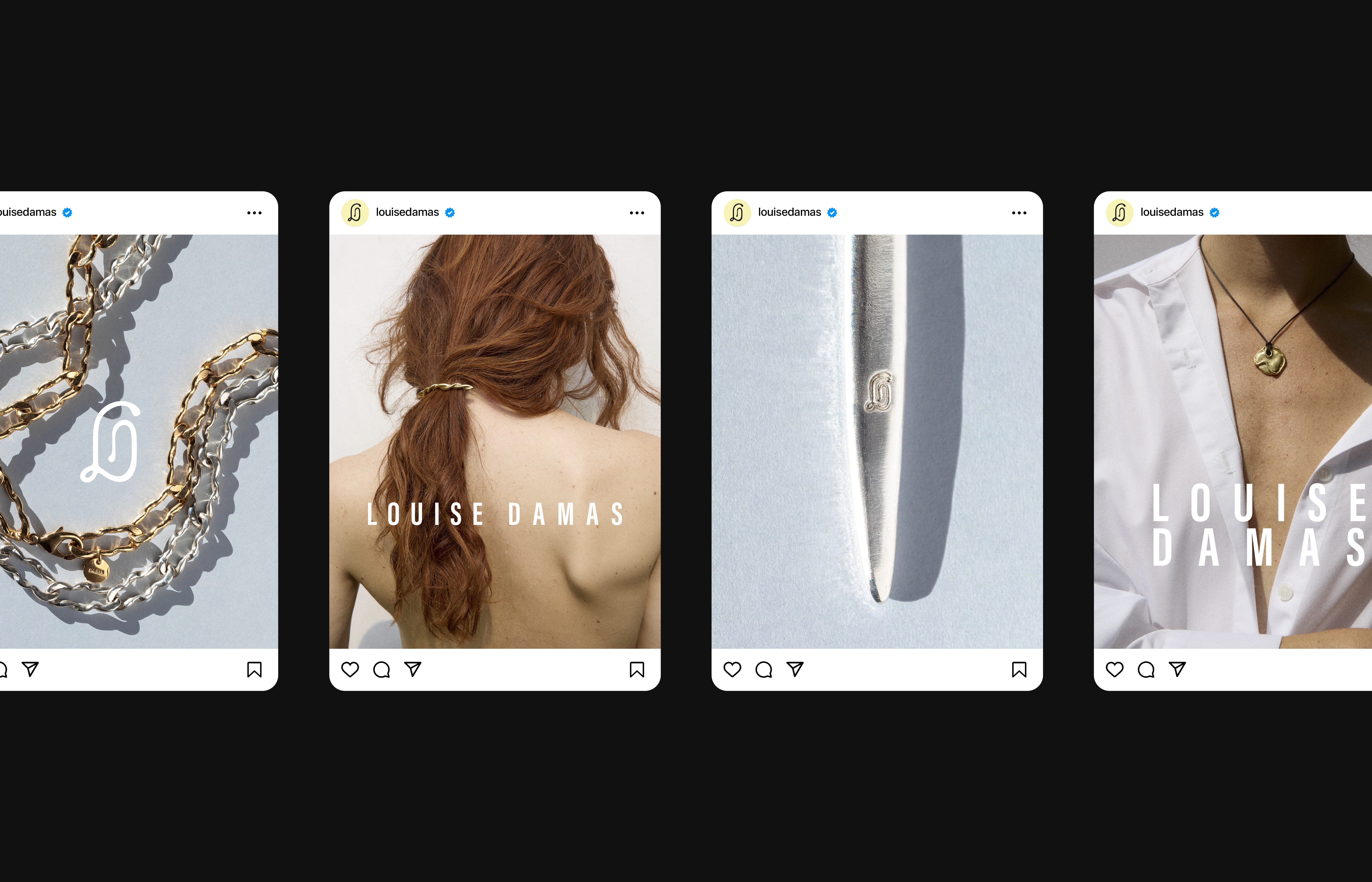 LOUISE DAMAS LOUISE DAMAS GRAPHIC DESIGN OF VISUAL IDENTITY OF THE FRENCH JEWELLERY BRAND LOUISE DAMAS.Brand strategy by Josephine Daru, Brand identity by Jeanne de Fouchecourt. LogotypePrintsWebsiteSocial Medias…